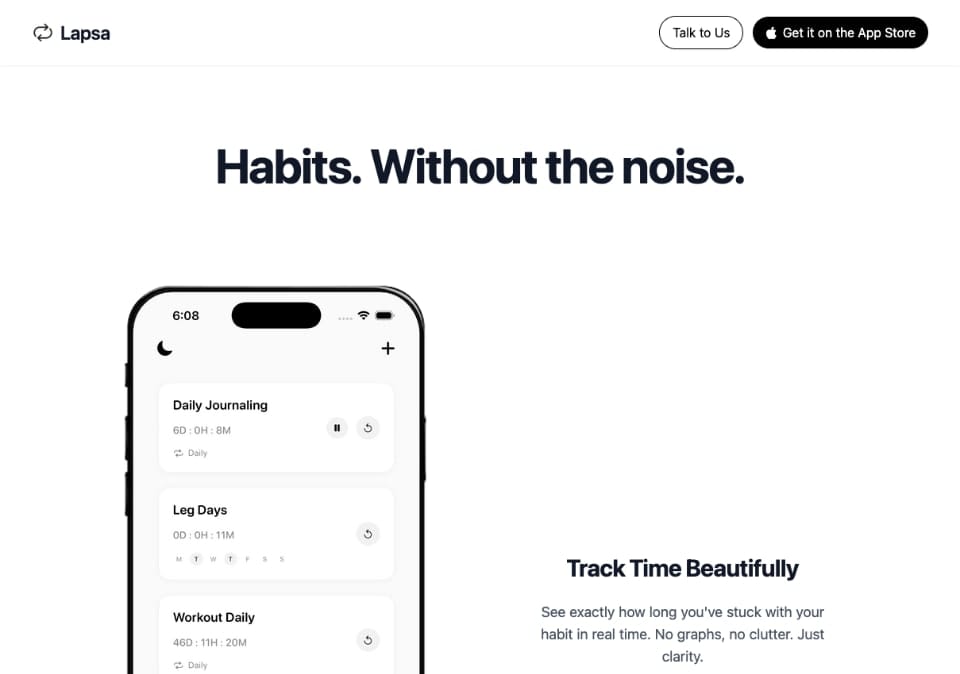Lapsa is a simple habit tracker app. Its creator used ChatGPT to generate the boilerplate Xcode code and then customized it. The design was built in Figma. The app received 500 downloads in just 4 days! 👏