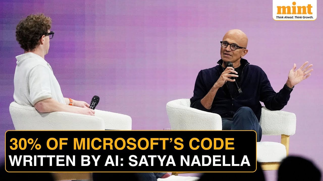Mark Zuckerberg and Satya Nadella discuss AI’s role in coding.